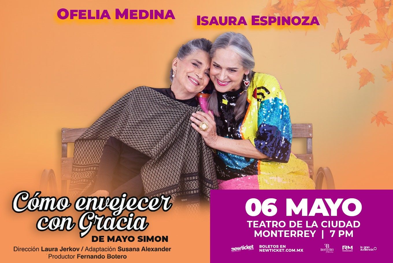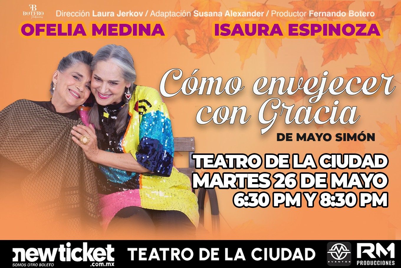 La entrañable comedia Cómo envejecer con gracia, adaptada por Susana Alexander, regresa a los escenarios con una nueva y poderosa interpretación encabezada por Ofelia Medina e Isaura Espinoza, bajo la dirección de Laura Jerkov y la producción de Fernando Botero.