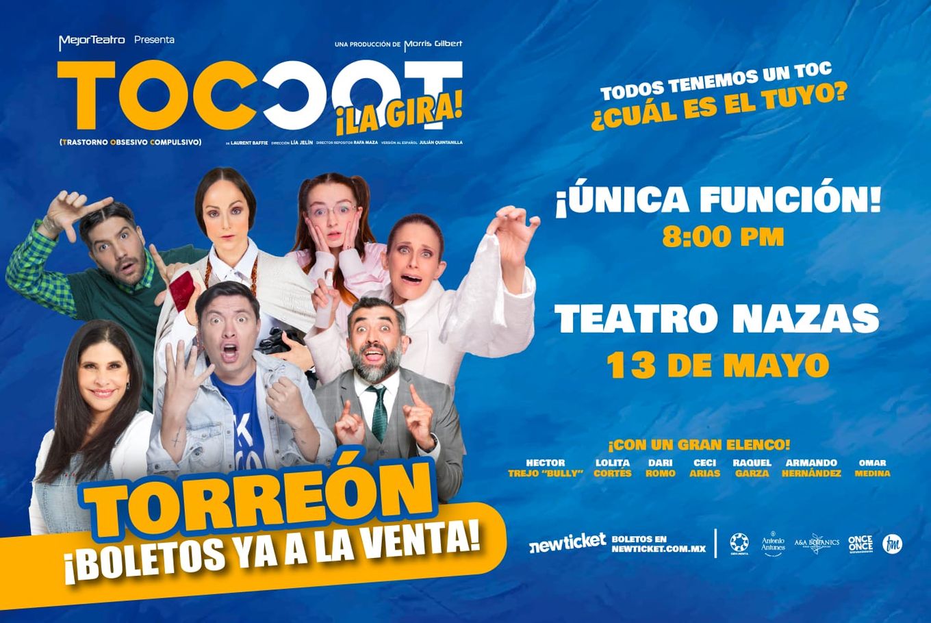 Toc Toc es una comedia dinámica e inteligente 🤍😂 que nos presenta a seis personajes que coinciden en la sala de espera de un reconocido psiquiatra 🛋️🧠. Cada uno padece un trastorno obsesivo-compulsivo distinto: miedo a los gérmenes 🧼, obsesión por el orden 📏, verificación constante 🔁, necesidad de repetir palabras 🗣️, entre otros.