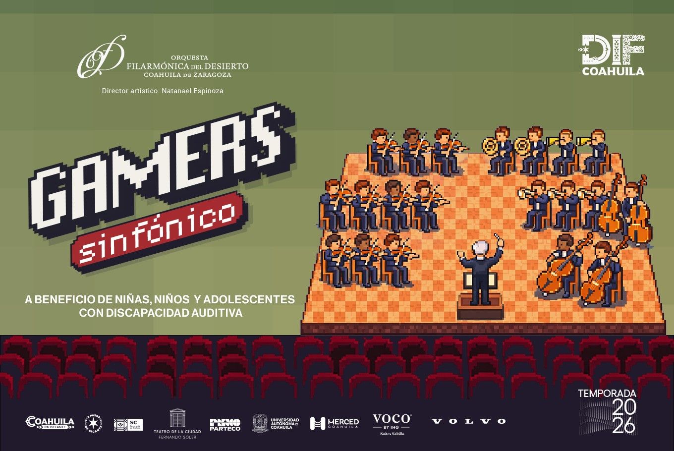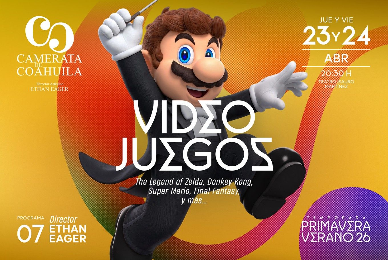 Camerata de Coahuila presenta el séptimo concierto de la Temporada Primavera-Verano 2026 “VIDEOJUEGOS”, jueves 23 y viernes 24 de abril a las 20:30 hrs., en el Teatro Isauro Martínez, bajo la dirección del maestro Ethan Eager.