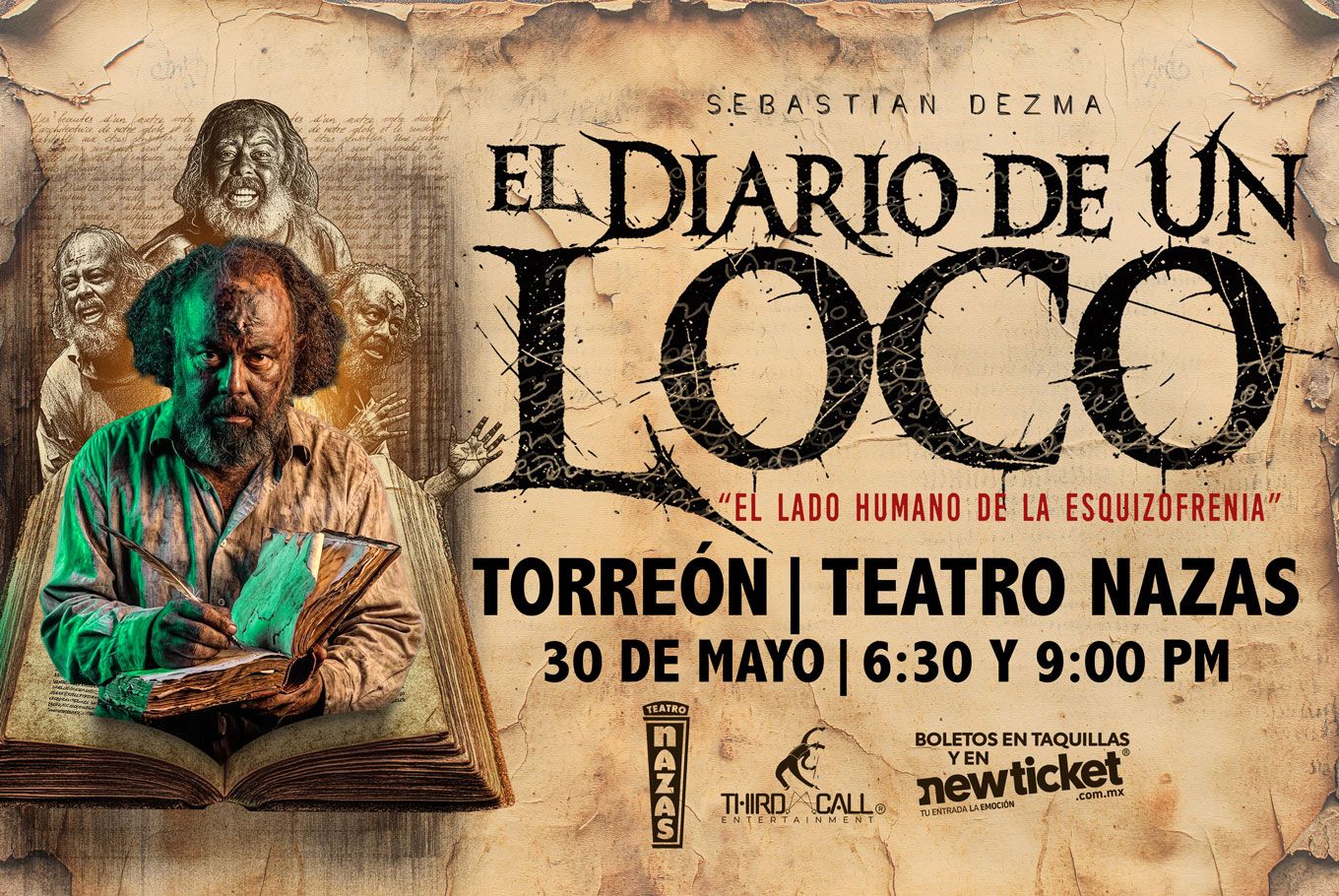 Sinopsis: ¿Hasta dónde puede resistir una mente antes de romperse… y decir la verdad? Llega El Diario de un Loco a Torreón con un viaje vertiginoso y profundamente humano al interior de un hombre común que comienza a perder la razón en un mundo que ya estaba enfermo. A través de su diario, Leonardo Ivanovich nos arrastra a un monólogo ferozmente honesto, donde la risa se mezcla con el dolor, la ironía con la ternura y la locura con un deseo desesperado por amar, vivir y no estar solo.