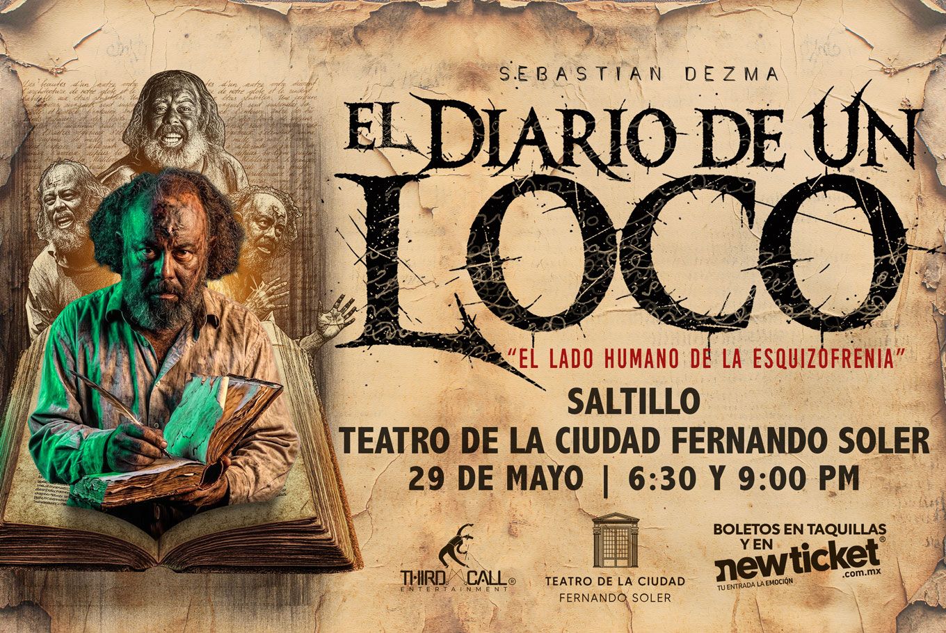 Sinopsis: ¿Hasta dónde puede resistir una mente antes de romperse… y decir la verdad? Llega El Diario de un Loco a Saltillo con un viaje vertiginoso y profundamente humano al interior de un hombre común que comienza a perder la razón en un mundo que ya estaba enfermo. A través de su diario, Leonardo Ivanovich nos arrastra a un monólogo ferozmente honesto, donde la risa se mezcla con el dolor, la ironía con la ternura y la locura con un deseo desesperado por amar, vivir y no estar solo.