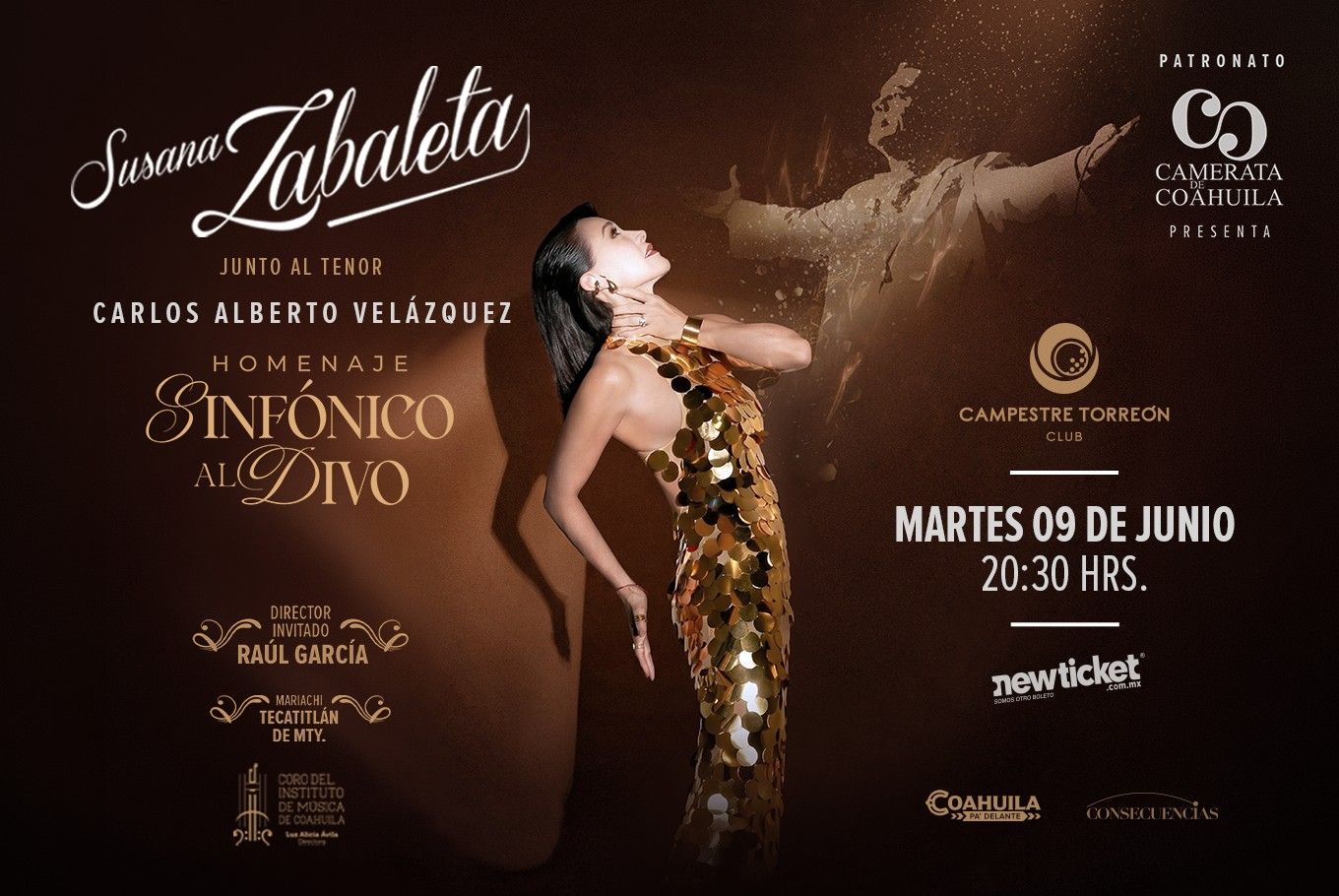 El Patronato de la Camerata de Coahuila presenta: “Homenaje al Divo”, un espectáculo inolvidable con la extraordinaria voz de Susana Zabaleta, acompañada por el tenor mexicano Carlos Alberto Velázquez, bajo la batuta del maestro Raúl García, director invitado.
